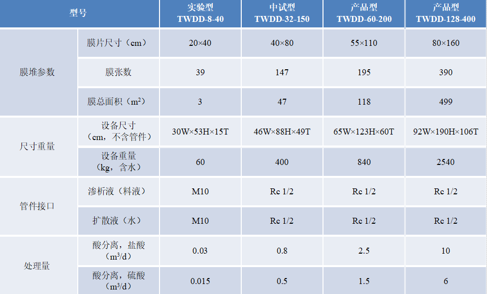 將擴散滲析陰膜、滲析室隔板以及擴散室隔板按一定順序排列起來,在兩側放置配水板并用夾緊板夾緊的分離酸的設備。