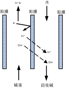 將擴散滲析陽膜、滲析室隔板以及擴散室隔板按一定順序排列起來,在兩側放置配水板并用夾緊板夾緊的分離堿的設備。 堿回收擴散滲析過程以濃差為驅動力,利用陽離子交換膜對堿的選擇透過性和對鹽或其它組分的高截留性,實現溶液中堿與鹽或其它組分的分離,分離出的堿溶液回用于生產工藝。
